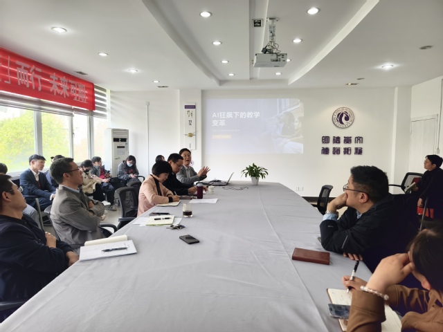 本网讯 为探索人工智能技术在教学中的应用,推动教学方式创新,4月3日下午,策略手机论坛版官网邀请具有丰富业界经验的谈海亮博士进行以“AI狂飙下的教学变革”为主题的教学交流活动。副院长陈奕主持,学院领导班子和全体老师参加。