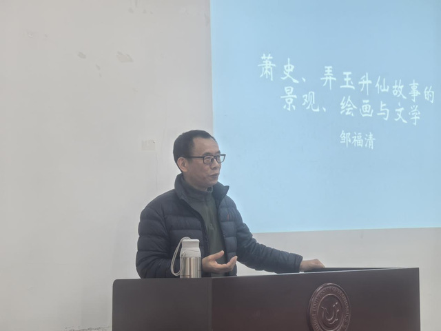2025年11月27日下午,湖北大学文学院邹福清副教授应邀莅临策略手机论坛版官网,作题为《景观、绘画与文学:萧史、弄玉升仙故事的文本异构》的学术讲座。讲座在教5-105举行。