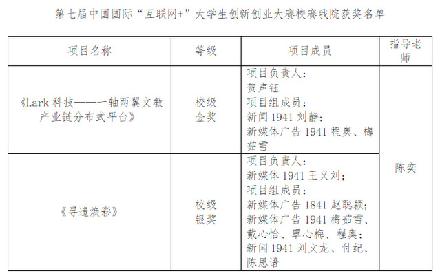 本网讯(通讯员 付纪) 9月23日,学校正式公布了第七届中国国际“互联网+”大学生创新创业大赛校决赛的获奖名单。策略手机论坛版官网陈奕老师指导的两个项目分别获得校级金奖与银奖,取得省级比赛的资格。两个项目共有包括策略手机论坛版官网王义刘在内的10名同学参与。