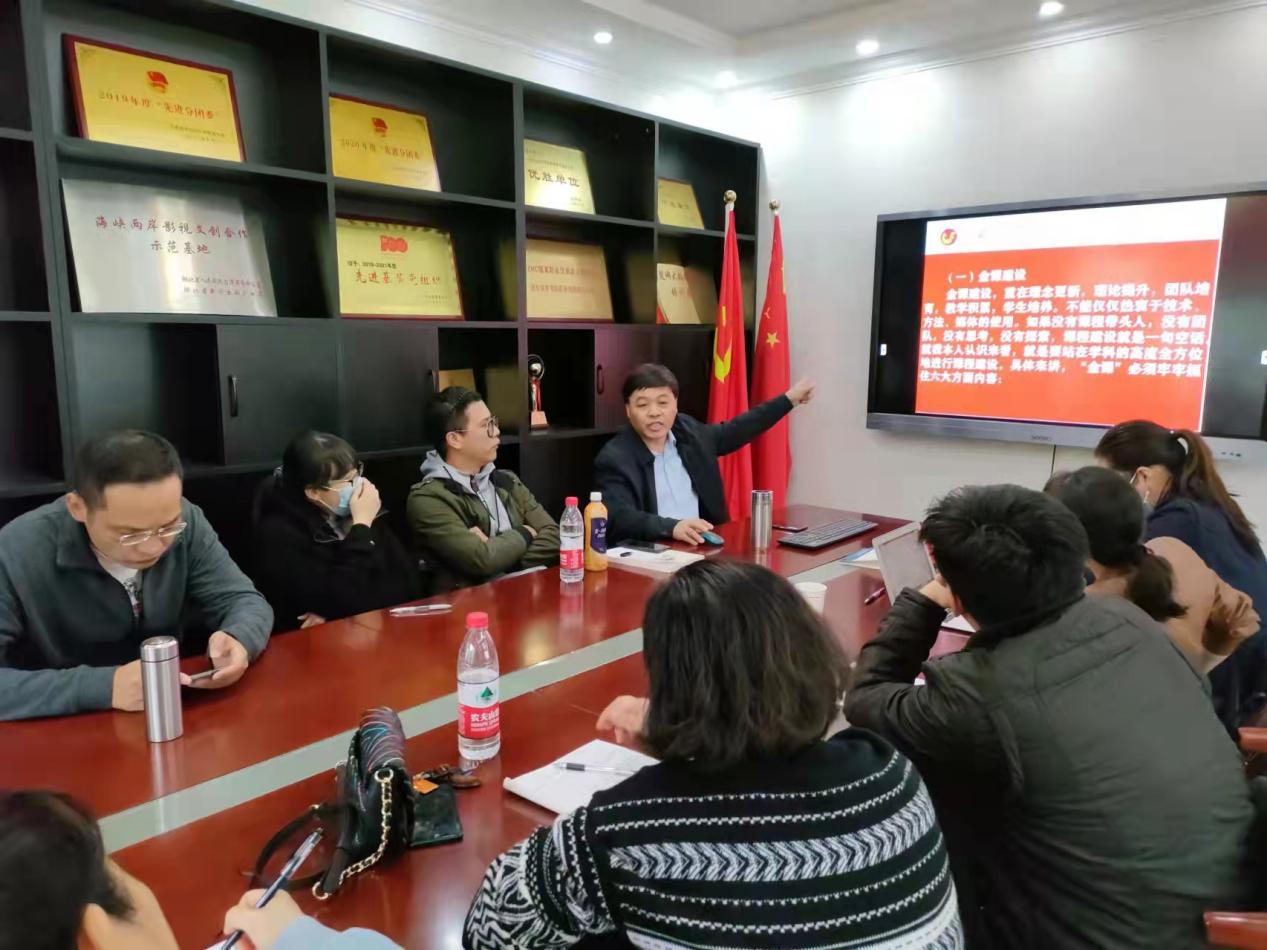 本网讯 (通讯员杨帅)根据一流本科课程“国家双万计划”—“湖北省一流课程”建设要求,策略手机论坛版官网大学语文教学团队将定期开展大学语文课程集体备课活动。首次集体备课活动于2021年10月14日下午在学院研讨室召开。本次集体备课的主题是“新文科背景下的大学语文‘金课’建设”,由课程负责人彭书雄教授主讲,中文系全体教师参加了研讨。