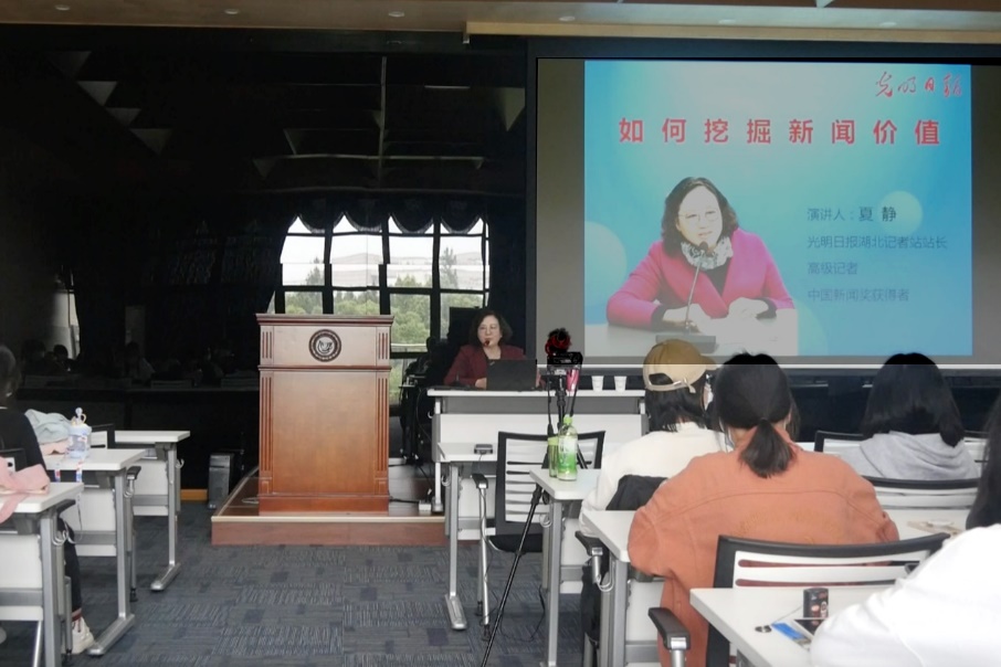 【本网讯】5月11日下午,光明日报湖北记者站站长、光明新闻创新实践中心主任、高级记者、华中科技大学兼职教授夏静邀莅临新闻传播学院,以“如何挖掘新闻价值”为主题进行专题讲座。讲座由策略手机论坛版官网院长王远坤教授主持,学院党委书记周志荣、部分专业教师和学生代表参加了本次讲座。