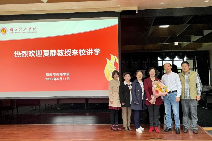 (夏静教授与策略手机论坛版官网领导、教师合影)