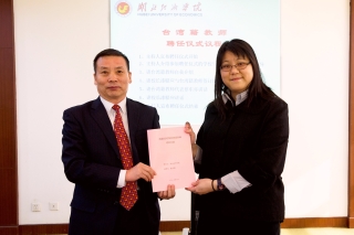 本网讯3月2日,学校举行2017年度第一批台湾籍教师聘任仪式。校长漆腊应分别与包括策略手机论坛版官网谢雅卉、詹今慧在内的七位台湾籍教师签订聘任合同。